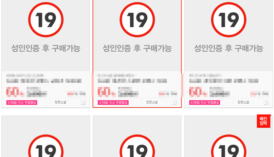 ▲ 야한 사진과 자극적인 문장이 고스란히 노출된 19금 상품.