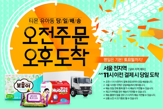 4월 28일까지 2주간 진행되는 당일배송 서비스는 분유, 기저귀, 물티슈 등 당장 떨어지면 큰 불편을 겪게 되는 육아필수 품목이 대상이다. 자녀 양육으로 외출이 어려운 스마트 맘들의 편의를 극대화하기 위해 기획됐다.