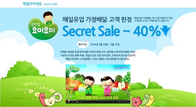 Secret Sales는 매일유업 가정배달 고객에 한해 특별한 가격에 제품을 구매할 수 있는 서비스다.