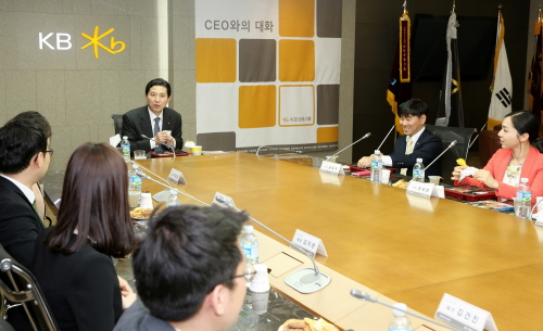 한편 KB금융그룹은 2011년부터 지속적으로 'CEO와의 대화'를 진행하고 있다. 그룹은 직원들의 다양한 의견을 청취, 직원들의 영업현장 아이디어를 경영전반에 반영하는 등 소통문화 확산을 통한 직원 사기 진작에 나서고 있다.