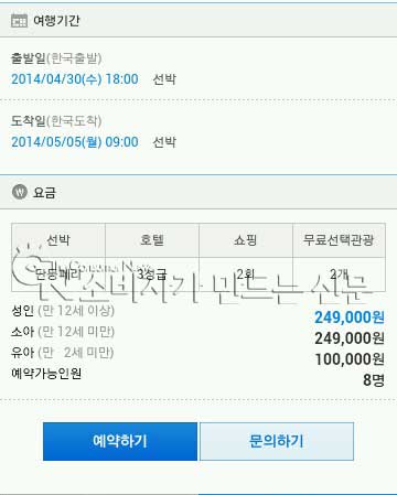 한 달여가 지난 4월 2일 상품가격이 29만9천 원으로 갑작스럽게 5만 원이 올랐다. 여행사 측은 “단동페리 배값이 올라 어쩔 수 없다”고 설명했다.