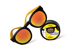 ‘알로’는 선 파우더의 콘셉트 컬러인 블랙과 옐로에 영감을 받아 오렌지컬러 미러 렌즈와 블랙 프레임, 탈착이 가능한 블랙과 옐로 컬러 다리를 사용한 한정판 선글라스를 함께 내놓았다.