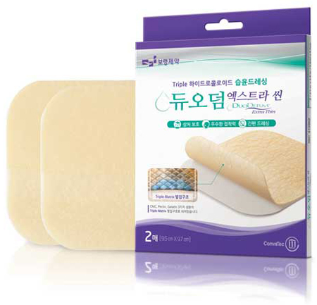 ‘듀오덤’은 미국에 본사를 둔 세계 최초 습윤드레싱 개발회사인 콘바텍(Conva Tec) 제품으로 30년간 임상자료를 통해 효능이 입증된 습윤드레싱으로 미국 판매 1위인 제품이다.
