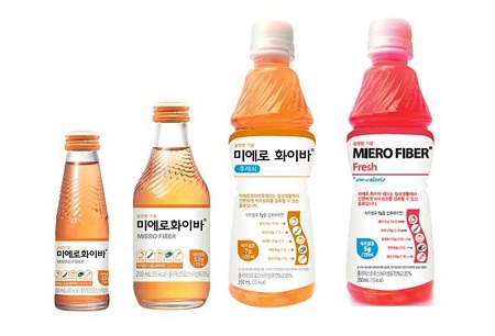 리뉴얼된 미에로화이바 패키지는 기존의 빗살무늬 병을 유지하면서 흰 바탕에 미에로화이바를 상징하는 오렌지색을 활용해 깔끔하고 심플하게 디자인됐다. 미에로화이바의 BI(브랜드 아이덴티티)에도 변경을 줬는데 브랜드 로고에 새로 개발한 브랜드 서체를 적용해 브랜드 네임이 한 눈에 들어오도록 표현했다. 또 식이섬유 함유량 관련 정보를 라벨 전면에 배치해 소비자들이 쉽게 알아보고 제품 용량을 선택할 수 있도록 제품 가독성을 강화했다.