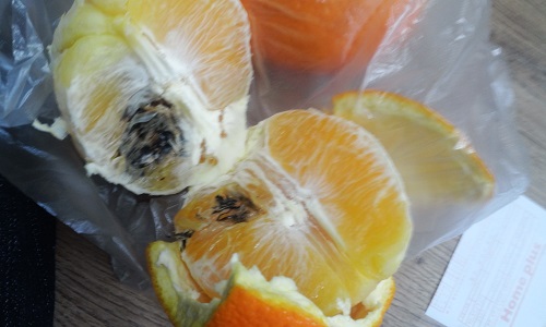 빛깔 좋고 신선해 보이는 오렌지 2개를 구입한 임 씨. 집에 돌아와 먹으려고 오렌지 껍질을 벗기던 중 시꺼멓게 썩어있는 속을 보고 경악했다. 어느 하나 성한 것 없이 2개 모두 심하게 부패해 있었던 것.