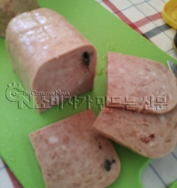 대전 유성구 장대동에 사는 이 모(여)씨에 따르면 그는 지난 3일 가족들과 간 캠핑에서 식사 준비중 햄을 썰다 검은 털로 보이는 물질이 흘러나와 경악했다.