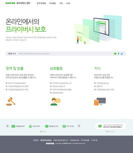 네이버 프라이버시센터는 이번 개편을 통해 이용자가 개인정보 보호에 관한 법령을 알아볼 수 있게 '개인정보 보호교실'을 강화하고 이와 관련된 정책을 추가하는 등 프라이버시 보호를 위한 콘텐츠를 보강했다.