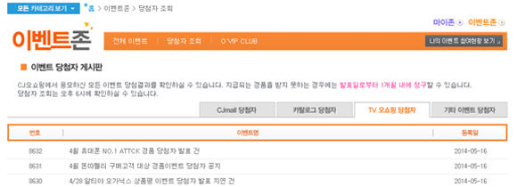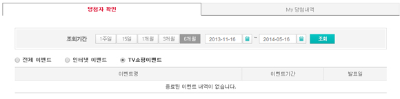 이벤트-당첨자 조회-TV오쇼핑 당첨자 |