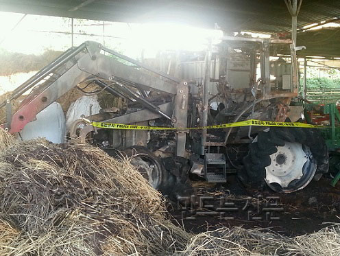 하지만 보름 뒤 어느 새벽 트랙터에 원인 모를 화재가 발생해 트랙터와 주변 볏집까지 모두 탔다. 당시 트랙터는 시동조차 걸리지 않은 상태였다고.