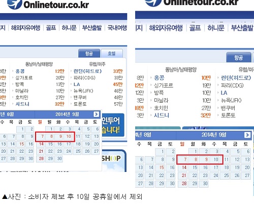 이에 대해 온라인투어 관계자는 “관공서 또는 다른 달력들을 살펴보면 대체휴일을 공휴일로 표기한 경우도 있다. 여행사다보니 우리 역시 공휴일로 반영을 했다”고 해명했다.