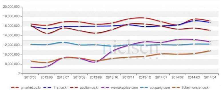 세월호 사건으로 인해 3월보다 다소 방문자수가 줄었지만 올해 이서진, 이승기를 앞세운 TV 광고 등이 없어진 상황에서 5개월 연속 1위는 괄목할 만한 성과다.