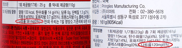 이들 수입판매원이 들여오는 프링글스가 어느 공장에서 제조되느냐에 따라 맛은 똑같지만 나트륨 함량은 다른 셈이다.