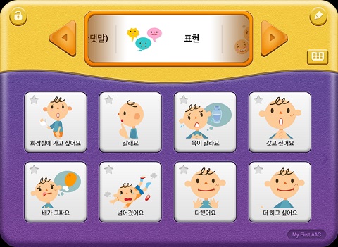 My First AAC는 말을 처음 배우기 시작하는 언어 연령 2~5세의 장애 아동을 주 대상으로 개발됐다.