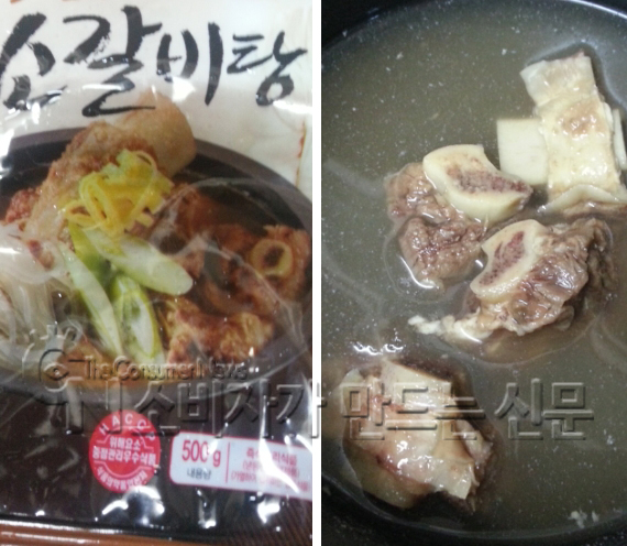 뿐만 아니라 양도 턱 없이 적었다. 겉포장지에는 소갈비탕 한 팩 중량이 갈비 포함 500g, 곰탕과 장터국밥은 600g으로 표기돼 있었다. 집에서 실제 중량을 재어보니 500g은 커녕 470~480g에 불과했다.