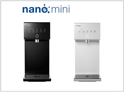 나노 미니 정수기는 국내 정수기 최초 제품 본체에 캐틀 전용 콘센트를 채용해 손쉬운 온수 공급이 가능하며 냉매가 들어가는 컴프레셔 대신 전자냉각 방식으로 냉수를 만들어 친환경 제품이라는 설명이다.