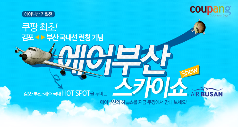 쿠팡은 에어부산 편도 및 왕복 항공권을 최대 52% 할인된 7만4천900원~9만9천900원(왕복 기준)에 판매한다고 밝혔다. 서울 또는 부산에서 출발하는 제주 노선과 서울-부산 간 노선 등이 마련돼 있으며 7월 24일까지 날짜를 선택할 수 있다.