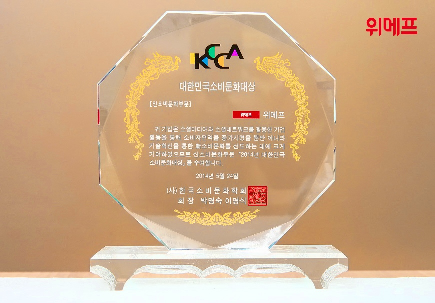 위메프가 수상한 신소비문화 부문은 기술혁신을 통한 새로운 소비문화를 선도하는데 기여한 기업에 수여되는 상이다.
