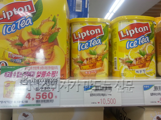 이에 대해 하나로마트를 운영하는 농협 관계자는 “3개 제품이 모두 할인가로 들어오다가 립톤 아이스티 복숭아맛만 다 팔려 정상가에 판매하기 시작한 것”이라고 설명했다.