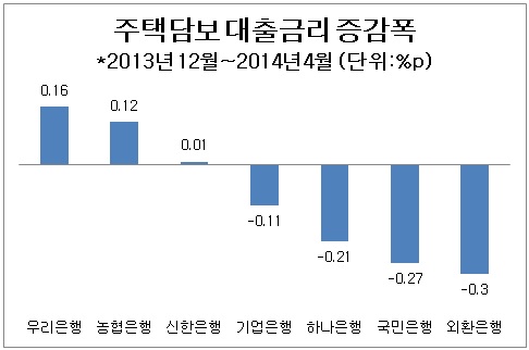 이에 비해 우리은행과 농협은행, 신한은행은 대출금리를 올려 대조를 이뤘다.