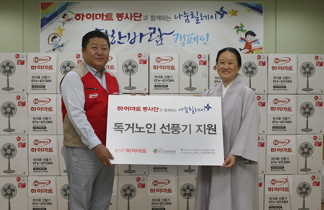 이날 행사에 참여한 김세완 롯데하이마트 영업본부장은 “이번에 전달해 드리는 선풍기가 홀로 사는 어르신들이 시원한 여름을 나는데 조금이나마 도움이 되었으면 좋겠다”며 ”하이마트 임직원 봉사단은 앞으로도 독거노인 대상 봉사활동을 꾸준히 진행할 예정”이라고 전했다.