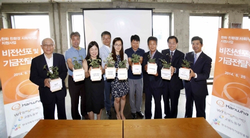 한화그룹은 국가적 과제인 일자리 창출과 사회적기업의 경영환경 개선에 기여하겠다는 고민을 바탕으로, 함께일하는재단과 함께 2012년부터 ‘친환경 사회적기업 지원사업’을 진행해오고 있다. 올해로 3년째를 맞은 지원사업을 통해 친환경적 가치 창출을 목적으로 하는 사회적기업을 발굴, 각 기업의 성장단계별 니즈(needs)에 따른 맞춤형 지원을 제공함으로써 이들의 재정적 자립 및 환경문제 해결을 돕고 있다.