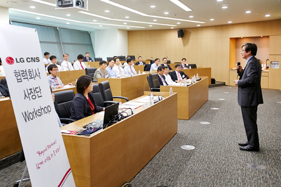 LG CNS는 5월부터 협력회사 대표 250여 명을 대상으로 7회에 걸쳐 워크숍을 진행하고 있다. 마지막 행사였던 이날 역시 40여 명의 협력회사 대표들이 참석했다.