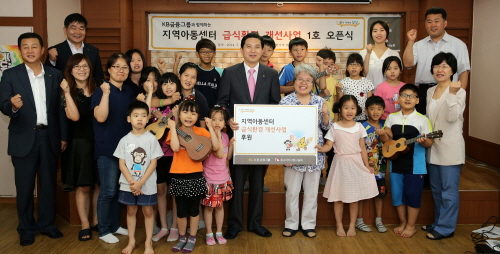 KB금융그룹(회장 임영록)이 지역아동센터 주방 및 급식환경 개선사업에 팔을 걷어붙였다. 사업에 돌입한 지 5개월여만에 첫 번째 성과물을 냈다.