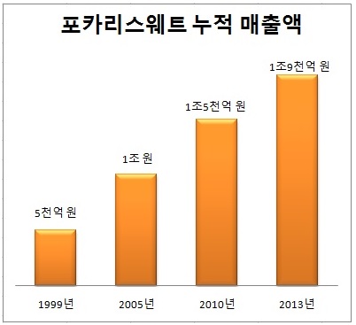 포카리스웨트는 국내 시장에서 베스트셀러로 꾸준히 성장해 왔다. 1993년 연매출 600억 원, 1994년 700억 원을 기록한데 이어 2004년에는 1천억 원을 돌파했다.