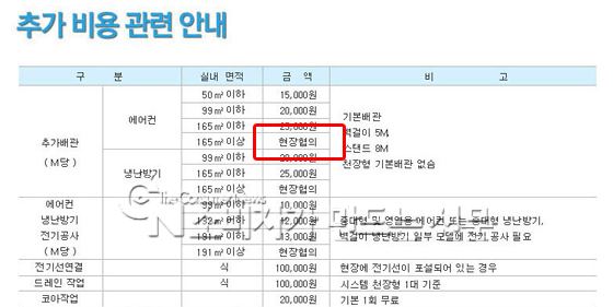 사전에 제시한 추가비용 기준이 무용지물이 되는 경우가 태반이다. 실제로 현장에 와서는 ‘주변 환경'을 탓하며 별도의 기준을 적용하거나 ‘현장에서 협의’한 가격을 제시하기 때문에 피해를 입더라도 쉽게 입증하기 어렵다.