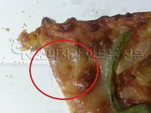 대형 피자전문점에서 주문한 피자에서 머리카락이 발견돼 소비자가 경악했다.
