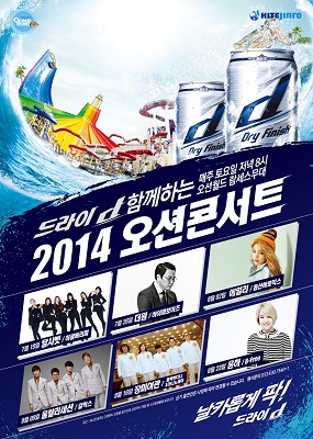 오션월드는 19일부터 8월 23일까지 매주 토요일 저녁 8시 ‘드라이d와 함께하는 2014 오션콘서트’를 갖는다. 7월 19일 달샤벳, 26일 더원, 8월 2일 에일리, 9일 울랄라세션, 16일 장미여관, 23일 윤하 등 국내 정상급 뮤지션들이 출연할 예정이다.
