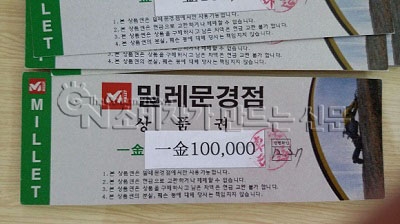 지난해 말 밀레 대리점에서 단체로 구입한 40만 원짜리 아웃도어 상품권을 지인으로부터 받은 최 씨.