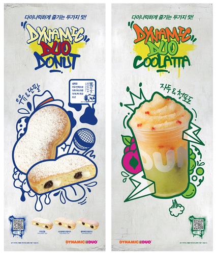 ‘다이나믹듀오’ 도넛은 ‘다이나믹듀오 우유단팥’, ‘다이나믹듀오 스트로베리 크림치즈’, ‘다이나믹듀오 블루베리 크림치즈’ 등 3종으로 권장소비자가격은 각 1천400원이다.