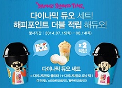 ‘다이나믹듀오 쿨라타’와 ‘다이나믹듀오 도넛’ 1개로 구성된 다이나믹듀오 세트를 구매 시 해피포인트를 기존의 두 배인 10%를 적립해주는 이벤트다. 기간은 오는 8월 14일까지.