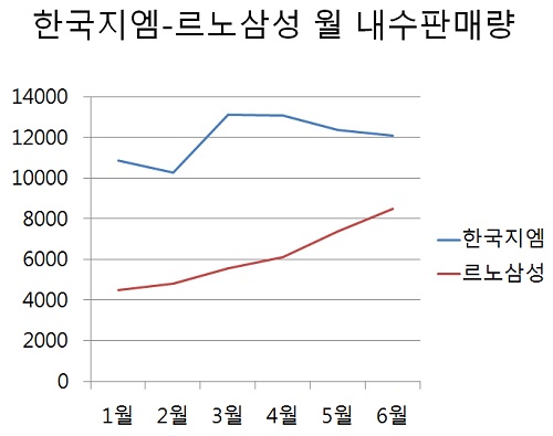 실제로 르노삼성과 한국지엠의 내수 판매량 간격은 급속도로 좁혀진 상황이다. 지난 해 12월 판매량에서 9천여 대 차이로 한국지엠이 '더블 스코어' 완승을 거뒀지만 6개월이 지난 6월에는 격차가 3천600대까지 좁혀졌다.