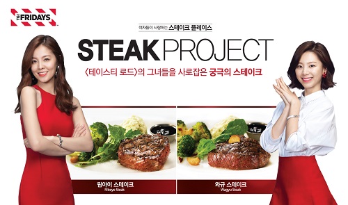 TGI 프라이데이스는 올리브TV 대표 맛집프로그램 ‘테이스티로드’ 진행자인 배우 김성은, 박수진을 모델로 선정해 김성은 편, 박수진 편, 스테이크 프로젝트 프로모션편 3편의 시리즈 광고를 운영하고 있다.