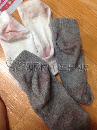 서울 강북구 미아동에 사는 김 모(여)씨는 락피쉬 레인부츠 때문에 골머리를 앓아야 했다. 착용 후 양말 곳곳이 붉은색으로 물들었던 것. 부츠 안쪽 꽃무늬 염색이 묻어나는 거라는 추측이 들었지만 일시적이라고 생각했다. 그러나 두 번째 착용에서도 물이 들자 제품 하자를 확신하게 됐다고.