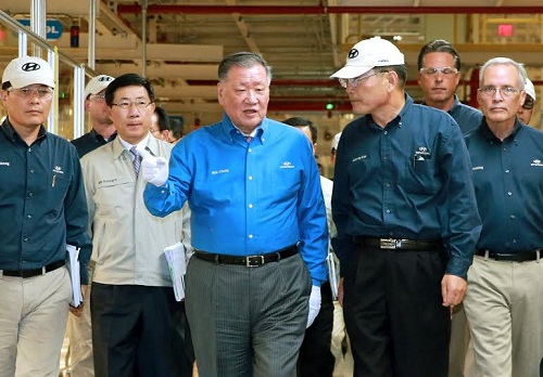 정 회장은 6일(이하 현지시간)과 7일 현대차 앨라바마 공장과 기아차 조지아 공장을 연이어 방문해 2005년 앨라바마 공장 설립 이후 10년 간 성공적으로 미국 생산 시대를 이끌어온 것에 대해 임직원들을 격려하고 향후 10년의 과제로 '소비자 최고 선호 브랜드로 도약'을 제시했다고 현대차 측은 밝혔다.