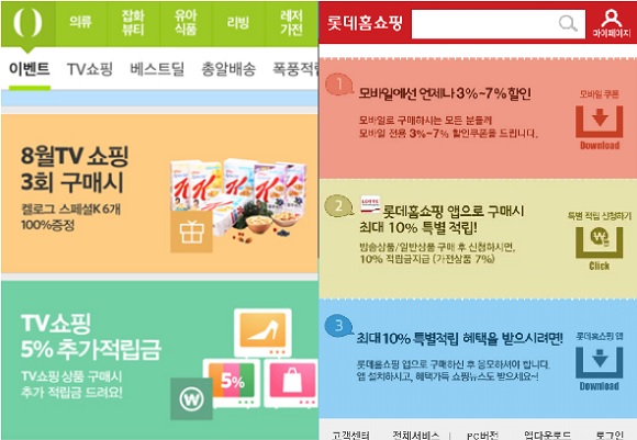 각 홈쇼핑사는 모바일 접속을 높이기 위해 TV에서 방송하고 있는 상품을 모바일에서 구매할 경우 5~10% 추가 적립을 제공하는 등 모바일 앱 이용 고객을 늘리기 위해 다양한 프로모션을 진행하고 있다.