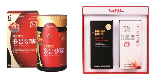 동원F&B가 직수입해 판매하는 미국 시장점유율 1위 브랜드 ‘GNC’ 선물세트는 남성용 종합영양제 ‘메가맨’과 여성용 영양제 ‘우먼스 울트라 메가’가 각 1병(90정)씩 들어 있는 GNC 종합비타민세트가 간판 세트다.