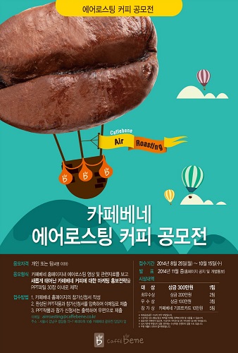 이번 공모전은 카페베네가 새롭게 도입한 에어로스팅 공법을 주제로 카페베네 커피 맛을 홍보하고 브랜드 이미지를 재고하기 위해 개최됐다는 게 회사 측 설명이다.