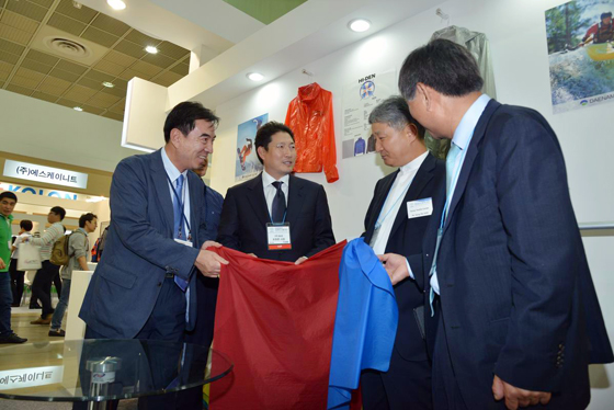 4일 효성에 따르면 이날 조 사장은 전시회 현장에서 고객사 임직원들과 즉석에서 간담회를 열었다. 조 사장은 섬유∙패션 산업의 비전과 효성의 동반성장 방향 등을 설명했으며 고객사 임직원들은 시장 개척의 어려움과 향후 효성에게 바라는 점 등을 허심탄회하게 이야기했다.