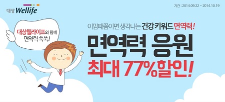 이번 기획전에서는 홍삼, 클로렐라, 프로바이오틱스 등 환절기 건강기능식품을 할인된 가격으로 구매 할 수 있다.