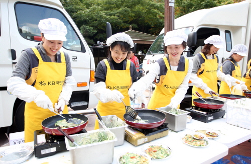 이날 봉사활동에는 KB국민은행 본부 봉사단 50여명 및 구세군 자원봉사자 10여명이 참여했다. 이들은 이동세탁차 및 급식차를 이용해 무료 급식 및 세탁 봉사활동을 했다. KB국민은행 임직원들은 지역 내 소외계층 500여명을 초대해 건강식을 지원하고 집안에 묵혔던 세탁물을 수거해 세탁해줬다.