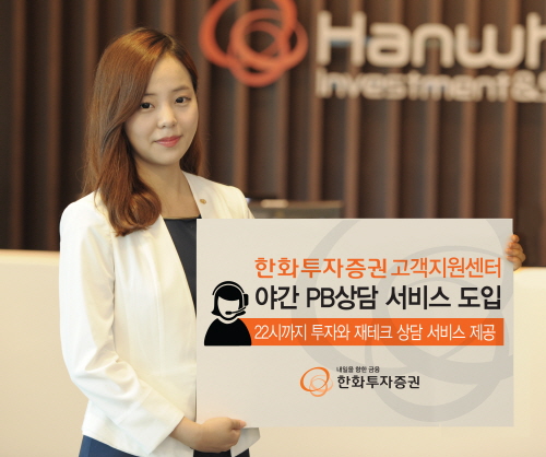 ▲한화투자증권은 27일부터 야간 PB상담 서비스를 도입한다.