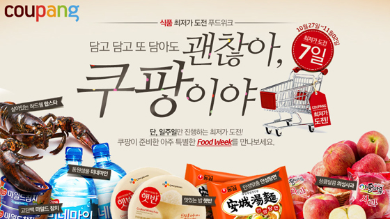 쿠팡은 쌀, 과일 등의 신선식품을 엄격한 검수 과정을 거친 싱싱한 상품들로 선보인다. 김제에서 수확해 바로 도정한 ‘볏고을 백미 20kg’ 2014년 햅쌀을 3만9천900원의 합리적인 가격으로 구입할 수 있다. 인위적인 착색이나 강제 후숙 처리를 하지 않은 신선한 감귤 ‘제주 조생노지감귤 10kg’은 과실 크기에 따라 7천800원~1만1천900원에 판매한다.