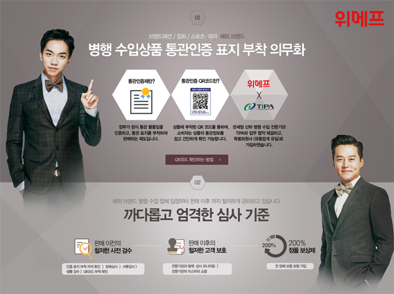 위메프는 소비자 신뢰를 높이기 위해 병행수입 통관인증제도를 도입했다. 병행수입 통관인증제도란 관세청에서 해외에서 수입된 제품에 통관표지(QR코드)를 부착하는 제도다.
