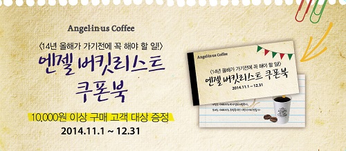 11월 1일부터 엔제리너스커피 매장에서 1만원 이상 구매 고객에게 ‘엔젤 버킷리스트 쿠폰북’을 증정하며 쿠폰 사용기간은 12월 31일까지다.