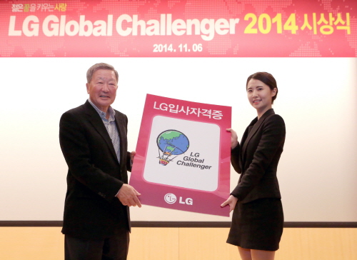 구본무 LG 회장이 6일 여의도 LG트윈타워에서 열린 ‘LG글로벌챌린저 2014’ 시상식에서 대학생들에게 “더 나은 세상을 만들기 위해서는 꿈을 이루고자 노력하는 것이 무엇보다 중요하다”고 강조했다.