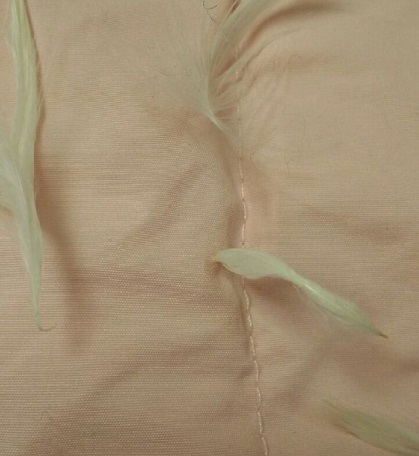 오리털깃이 마치 가시처럼 이불 표면으로 빠져나와 덮고 잘 수 없을 정도로 따끔거렸고 자고 일어나면 털이 많이 빠져 있었다.